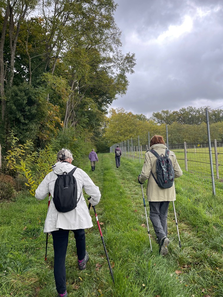 Malgré une météo plutôt pessimiste avec une température de 16° ce sont 35 marcheuses et marcheurs dont trois invités et trois enfants qui se sont retrouvés au N° 5 de l’Allée des Peupliers chez Yolaine Alain C pour effectuer un parcours de 7.6 kms sans difficulté.