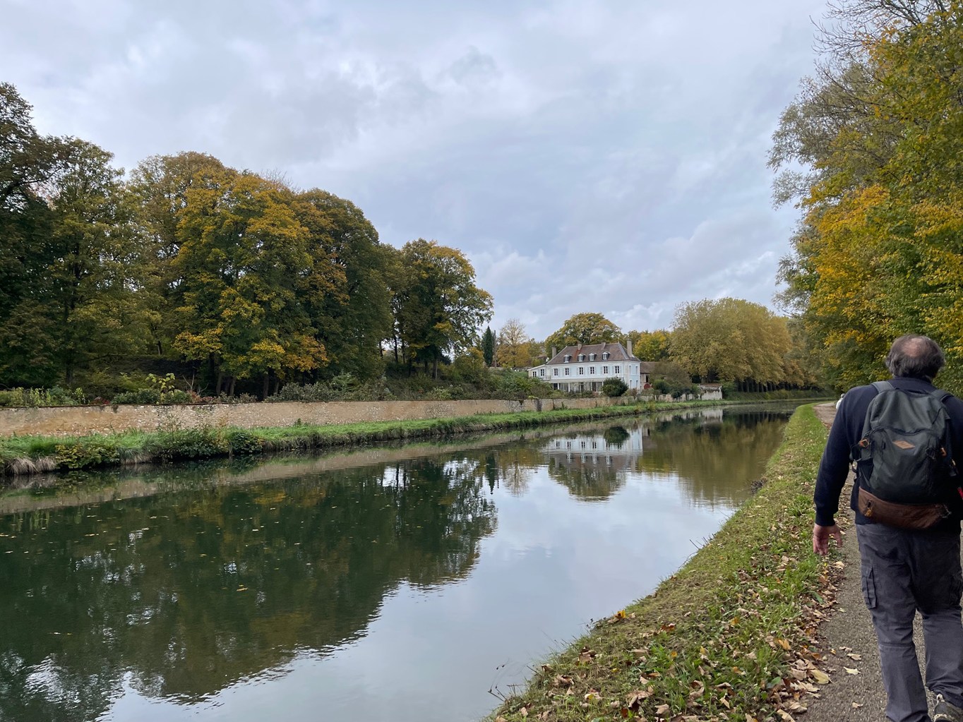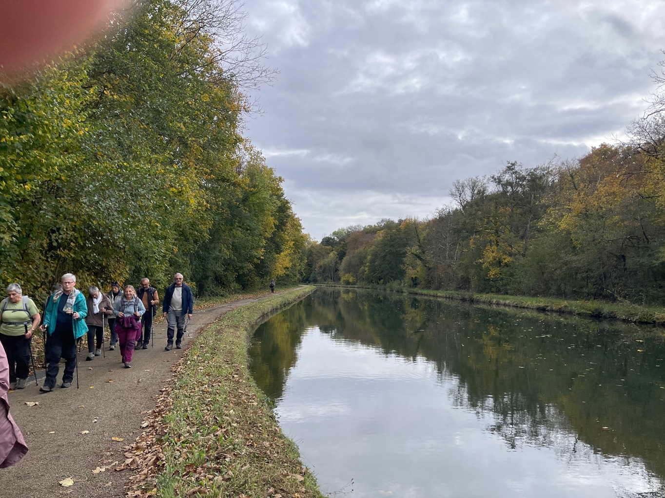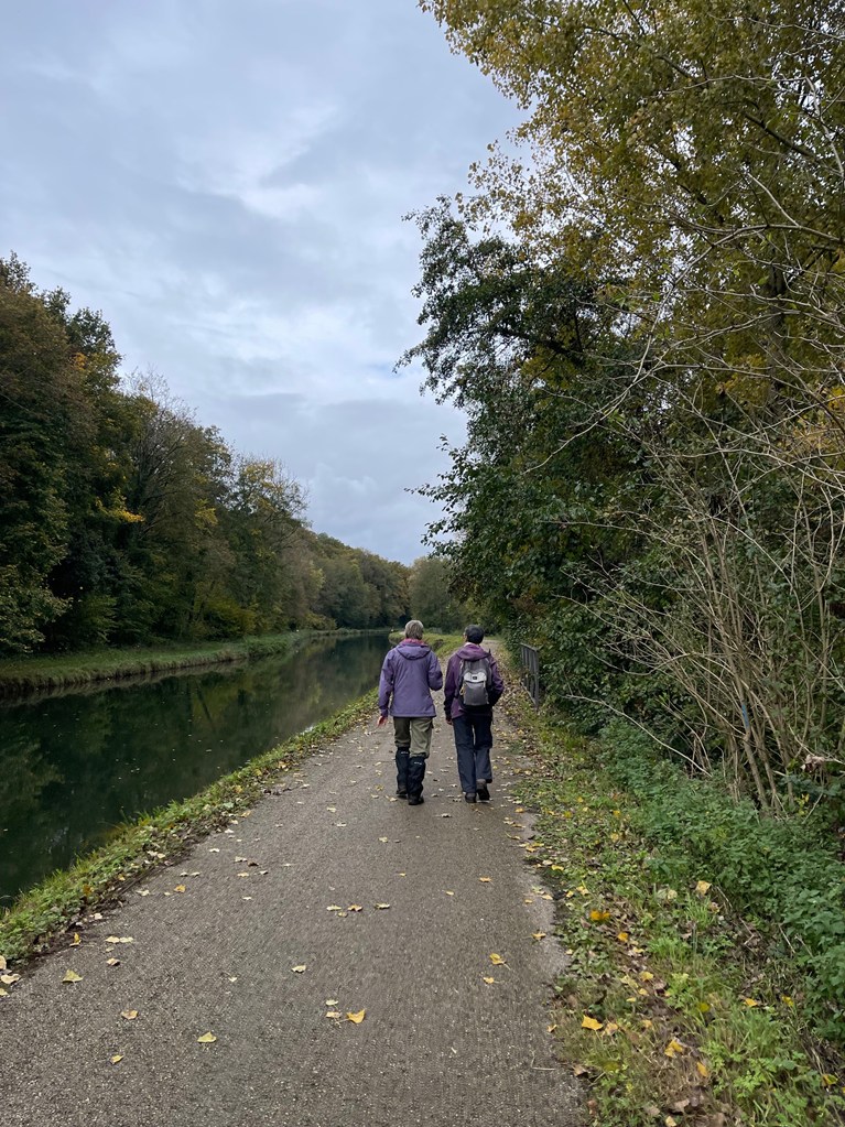 Descente jusqu’à l’écluse de la Sablonnière par le bois de Beauregard, marche au long du canal sur la Scandibérique jusqu’à l’écluse de la Tuilerie, passage par la rue des Ponts, la rue de Mormant pour rejoindre le haut de Conflans où les chemins nous mènent successivement au Clos du Canal, les Grands Champs, la Petite et la Grande Fosse, retour par les Fourneaux et l’allée des Peupliers ou Yolaine nous attendait pour nous servir le pot de l’amitié malgré la pluie qui ,elle aussi, arrivait.