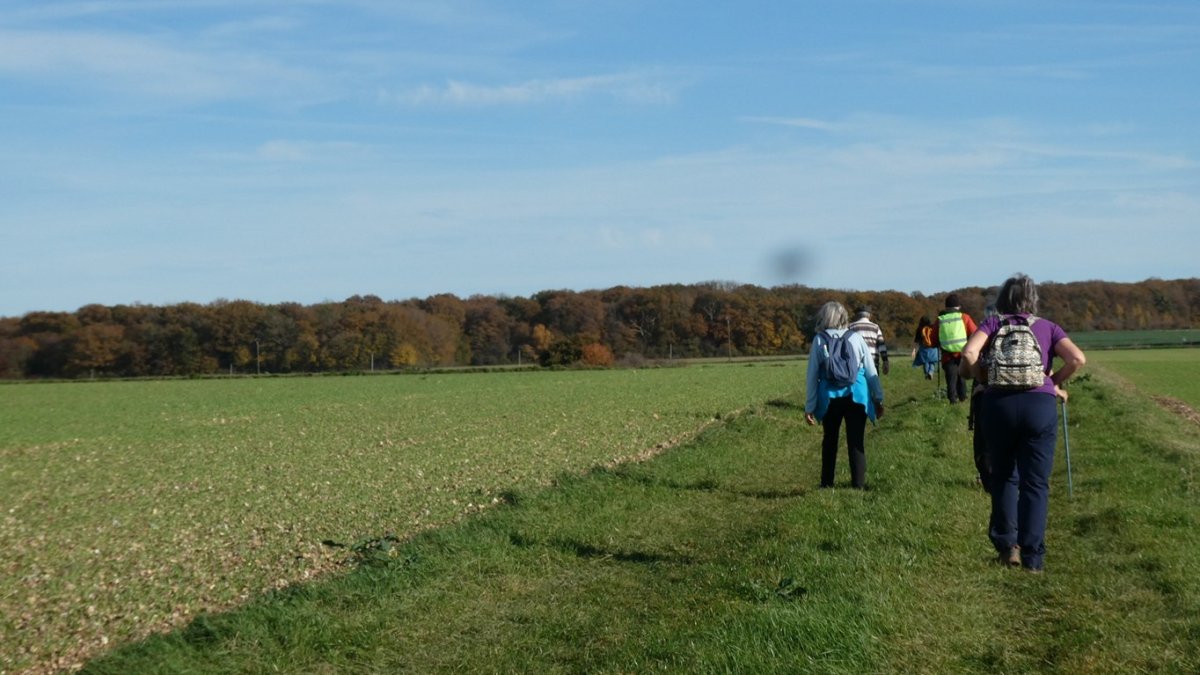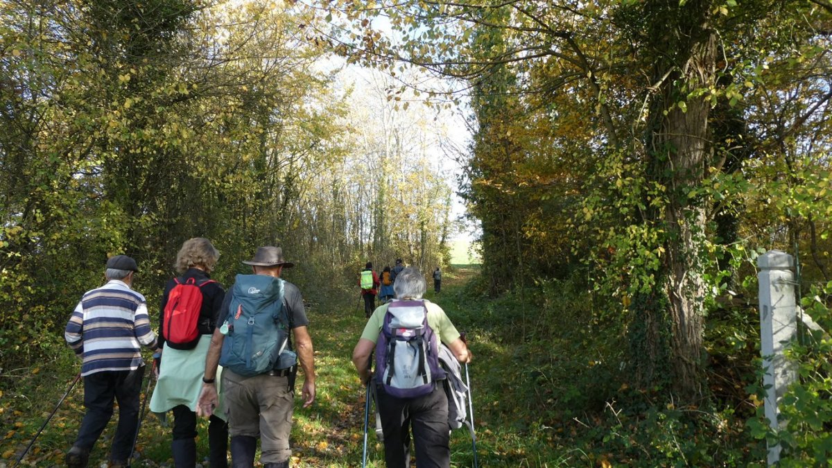 La joyeuse troupe emprunte ce parcours de 7,5 kms sous un soleil et un ciel bleu dignes d’un début d’été. L’illusion aurait été parfaite sans les couleurs automnales des arbres.